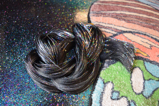PLuTO - BLaCK with silver TiNSEL FESTiVAL BRAiD